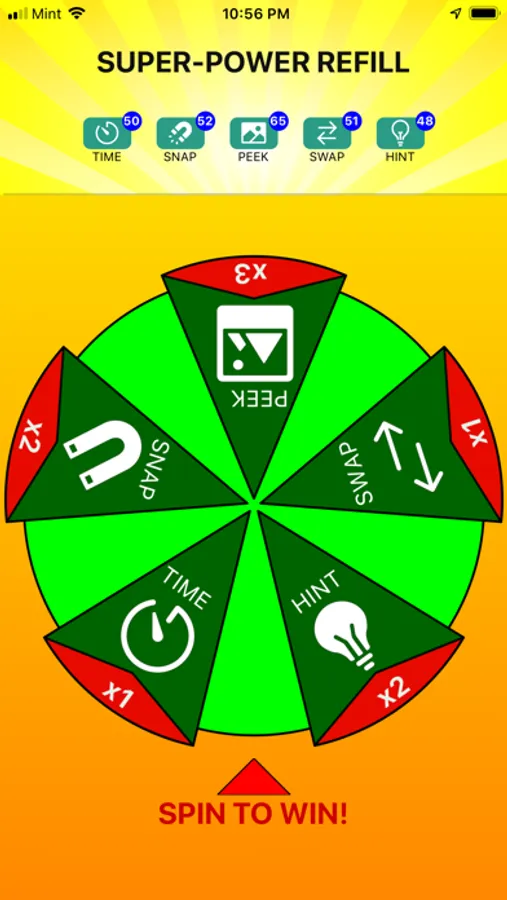 Take a free spin at the Wheel of Fortune to replenish your super-powers at the end of each match.