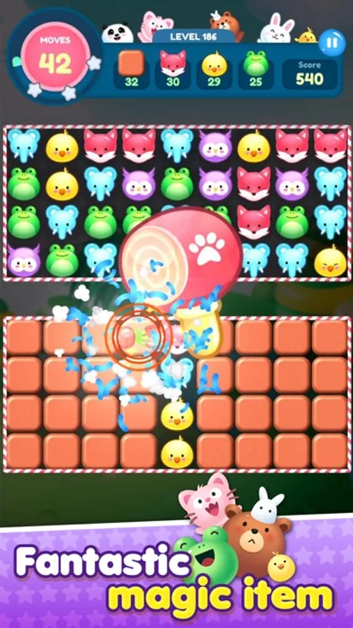 - Try moving the animal balloons with your finger one by one. Gather 3 to 5 animal balloons of the same shape in line to pop them! Level is cleared when all missions are cleared~!