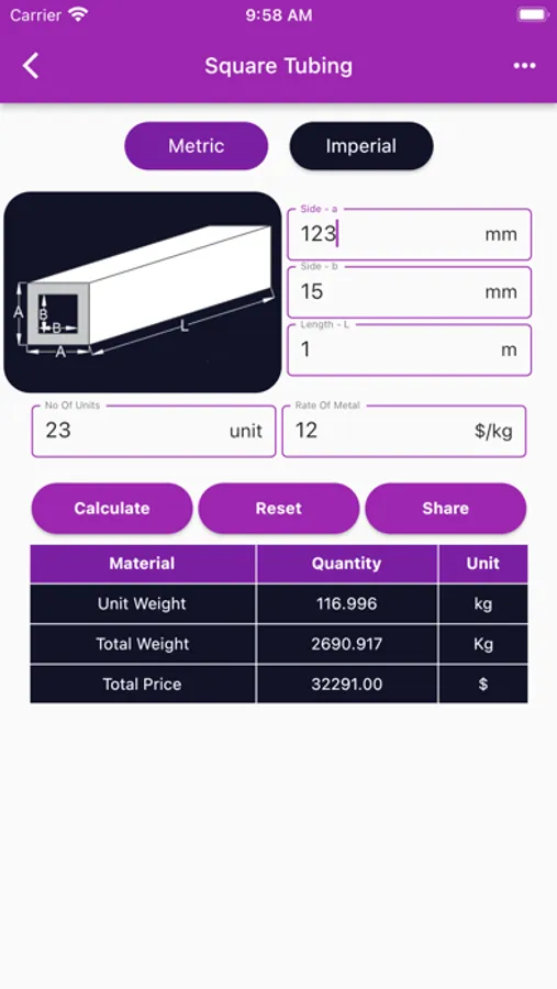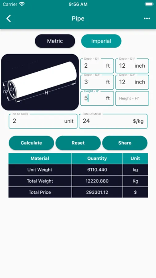 Metal Calculator all in one can calculate with the Imperial Measurement System & Metric Measurement system.