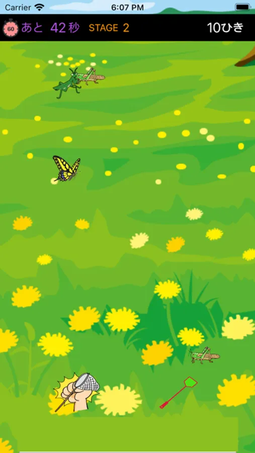 むしを見つけたら虫捕り網モードでタップすればOK。