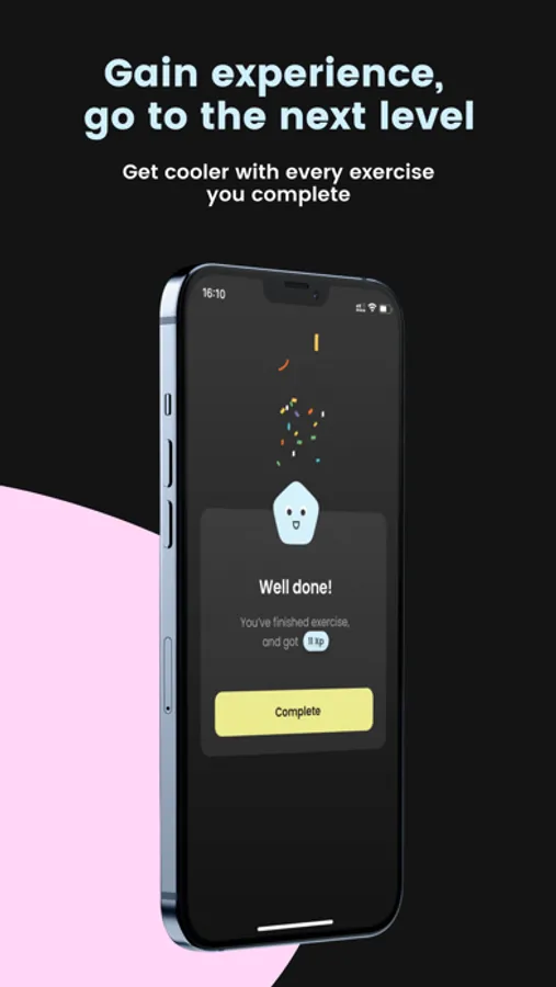 - Gain experience, go to the next level. Get cooler with every exercise you complete