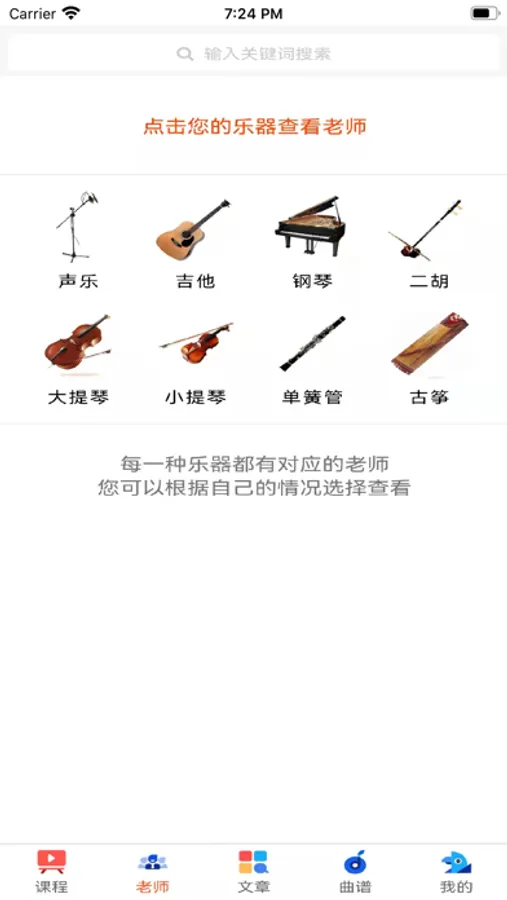钢琴家教APP除了钢琴还包含了声乐·钢琴·大提琴·吉他·小提琴·单簧管·二胡·长笛·古筝·架子鼓·古典吉他·琵琶·萨克斯·阮·古琴..等43种陪练教学,是一款基于明星创办的学音悦网,上万名全球化师资,专注于钢琴陪练服务开发的手机在线找本地家教老师和在线音乐家教老师的应用,可以帮你找到专业音乐院校毕业钢琴教学和陪练老师。