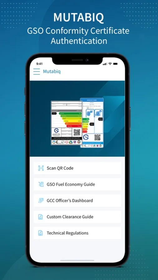 Know more about the MUTABIQ app, GCC Standardization Organization, and its contact details, privacy, terms of use.