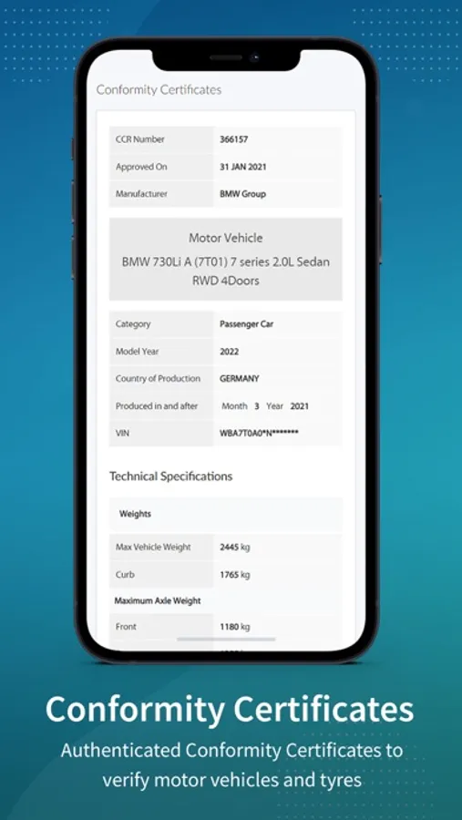 Authorized users can access fuel economy labels, conformity certificates, recalls, VINs, and authorized importers.