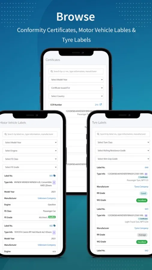 Scan QR Code in motor vehicle/tyre label to verify the label details.