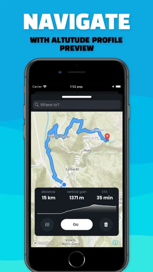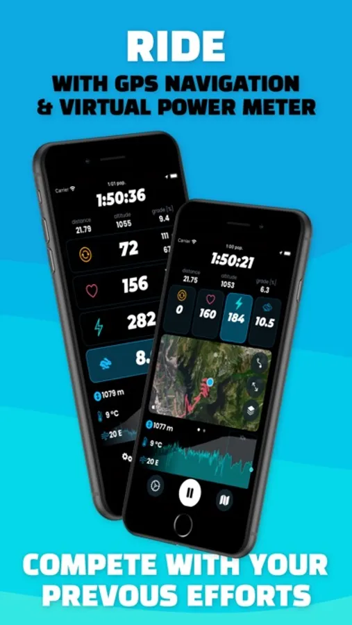 • Keep yourself in the loop with all the relevant data: distance, duration, current altitude, current gradient, max and average values, etc.