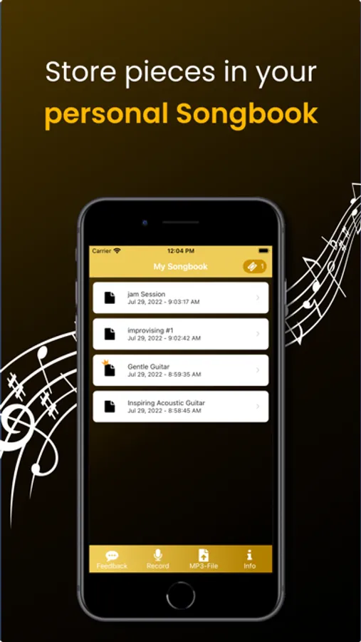 With Guitar2Tabs you can create on-the-go recordings of your guitar performance.