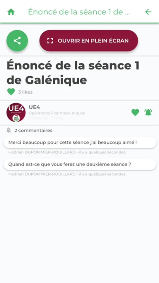 Notre appli mobile intègre un système de personnalisation des notifications. En t’abonnant à une unité d’enseignement (UE), tu t’assures de recevoir en temps réel les supports, quiz et vidéos publiés dans cette UE. Avec l’appli mobile, tu bénéficies d’un soutien personnalisé jusque dans ta poche !