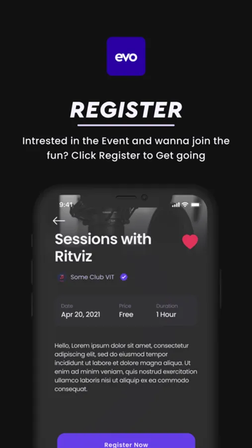 Evo is a mobile app that connects students and clubs with events happening on campus. It offers an all-inclusive experience for students by providing the most up-to-date event listings from across the campus right in your pocket. With our platform, users can not only view events but also register for them as well.