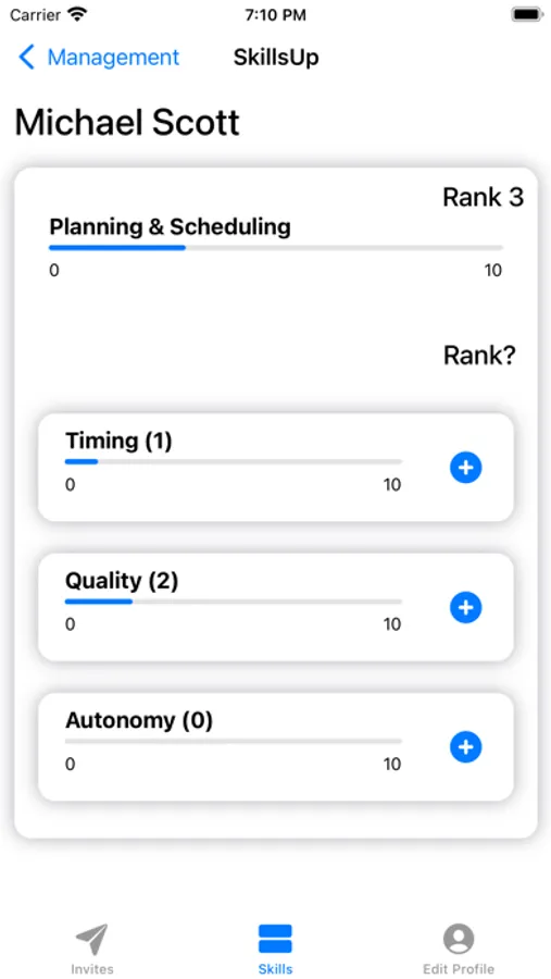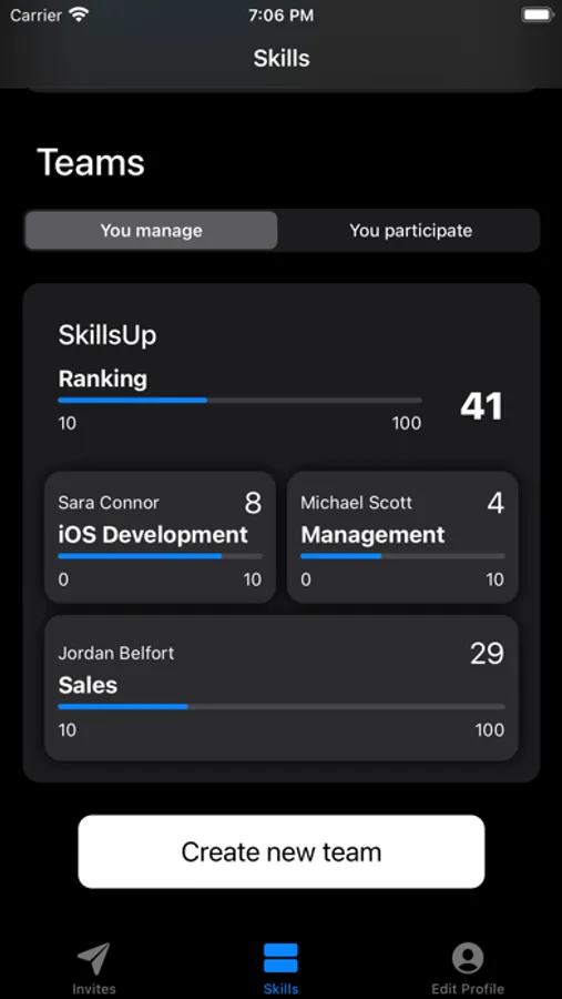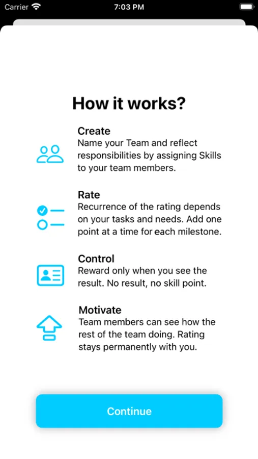 SkillsUp lets you assemble and manage teams without need for micromanagement. Pick skills, required for your tasks, set milestones for evaluation and rate responsible person for them. The rating is done by adding a skill point to the selected skill. There are three criteria to rate: Timing, Quality and Autonomy. If you don't feel that team member performed well, don't reward him/her with skill point. Progress is visible to all team members within the team. That's acts as a grate motivator to perform and compete. Skills gained, stays permanently with team member.