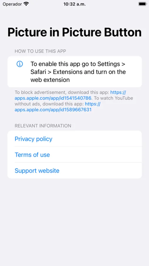 How to use this app: Go to Settings > Safari > Extensions and enable the Safari web extension