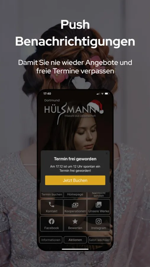 Wir freuen uns Ihren Besuch bei uns noch einfacher zu machen. Die integrierte PUSH Funktion benachrichtigt Sie über Änderungen oder Neuigkeiten rund um Ihren Friseurbesuch.