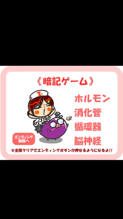 豚角先生と一緒にいろんなミニゲームを回ってホルモンや脳神経なんかを覚えてな!!