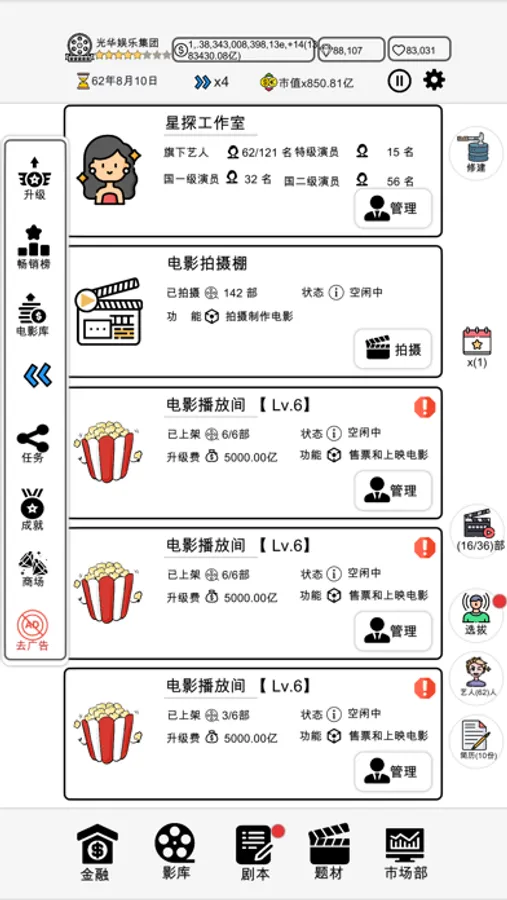 题材丰富的模拟经营游戏来帮你完成导演的梦想,在游戏中你可以