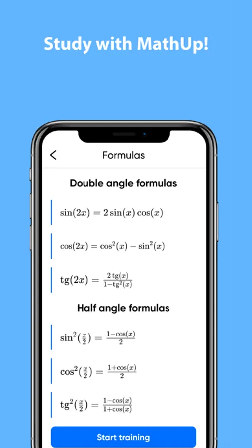Need to quickly learn lots of math formulas? Then this app is right for you! A convenient and effective system of regular exercises allows you to easily prepare for an exam and improve your knowledge of the subject. The application presents such mathematical topics as: trigonometry, polynomials, logarithms, roots, degrees and progressions. Different types of exercises and difficulty levels allow you to individualize your training. Learn with us!