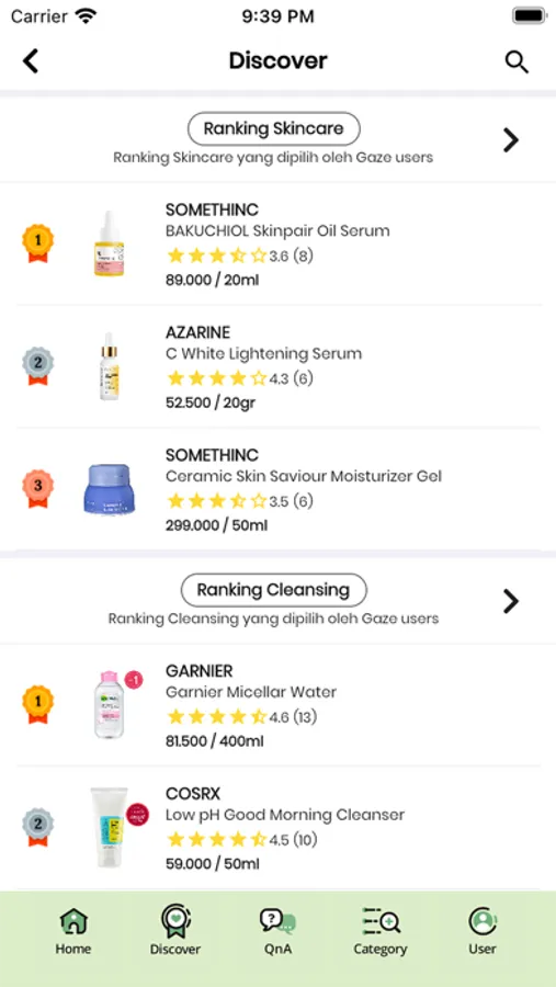 Fungsi utama aplikasi GAZE adalah analisis bahan kosmetik dan ulasan pengguna. Anda dapat mempelajari lebih lanjut tentang kosmetik yang ingin Anda beli melalui bahan dan ulasan. Anda juga dapat mengetahui kosmetik mana yang popular melalui fungsi peringkat yang dibuat oleh ulasan pengguna secara sekilas.