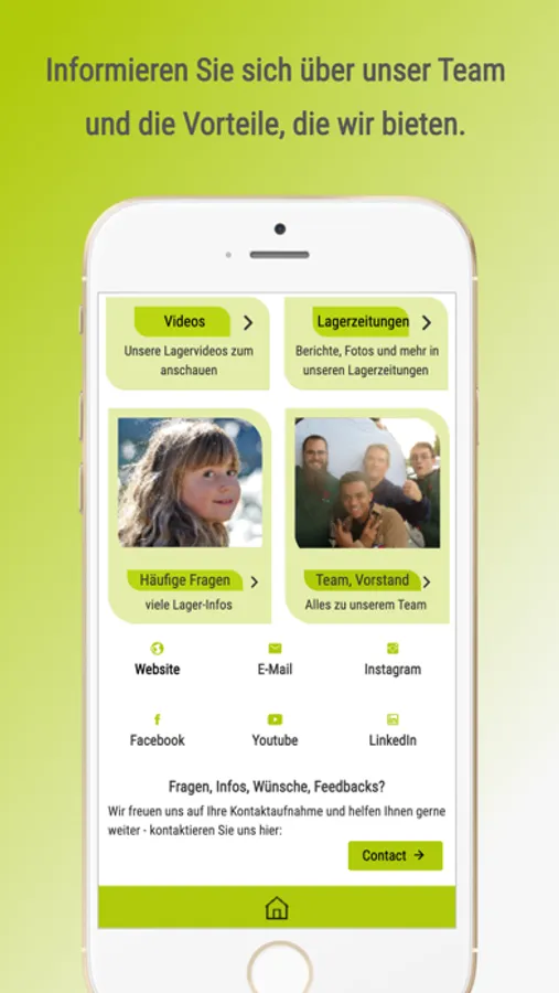 Mit unserer App erfahren sie viel über die Angebote von unserem Verein und Sie bekommen Tipps, wie Ihr Kind mit viel Freude an einem Ferienlager teilnehmen kann. Auch geben wir Ihnen viele Informationen, wie beispielsweise zur Prävention von Heimweh, oder wie das Packen für das Ferienlager am besten gelingt. Ebenso informieren wir Sie über unseren Verein und unsere Ferienangebote, oder wie Sie auch das Hobby zum Lagerleiter entdecken können.