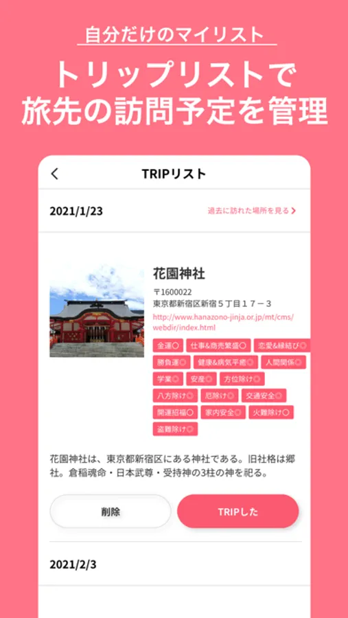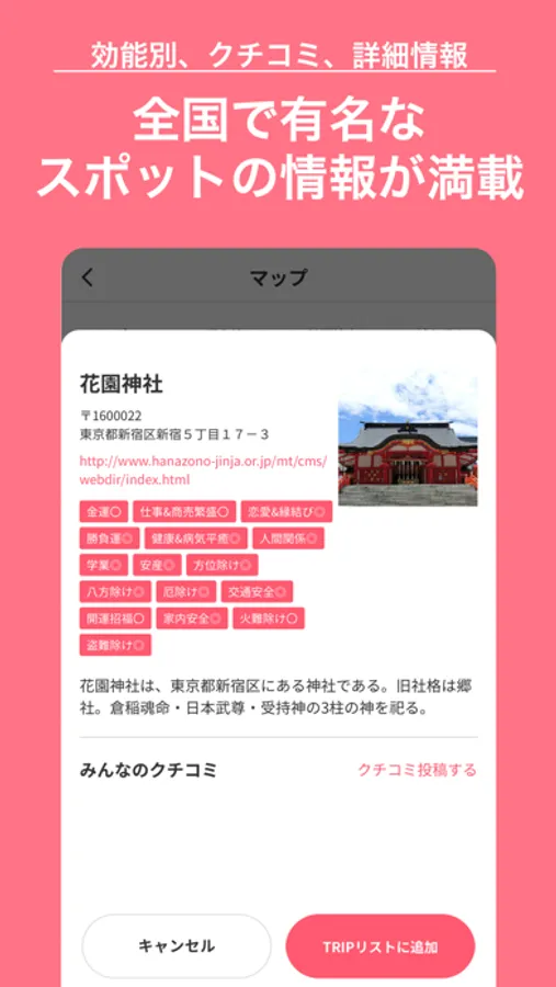 旅先での神社・仏閣・パワースポット巡りに役立つ、旅行サポートアプリです。