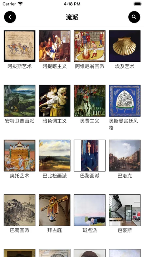 巴黎画派、埃及艺术、斑点派、拜占庭、表现主义、长安画派、现实主义、创作版画、东方划风格、概念艺术、古典主义、极简主义、金陵画派、日本画、赛博艺术、水墨画、写实主义、印象派、抽象点彩画派等百余种流派类别给您带来丰富多彩的画作。