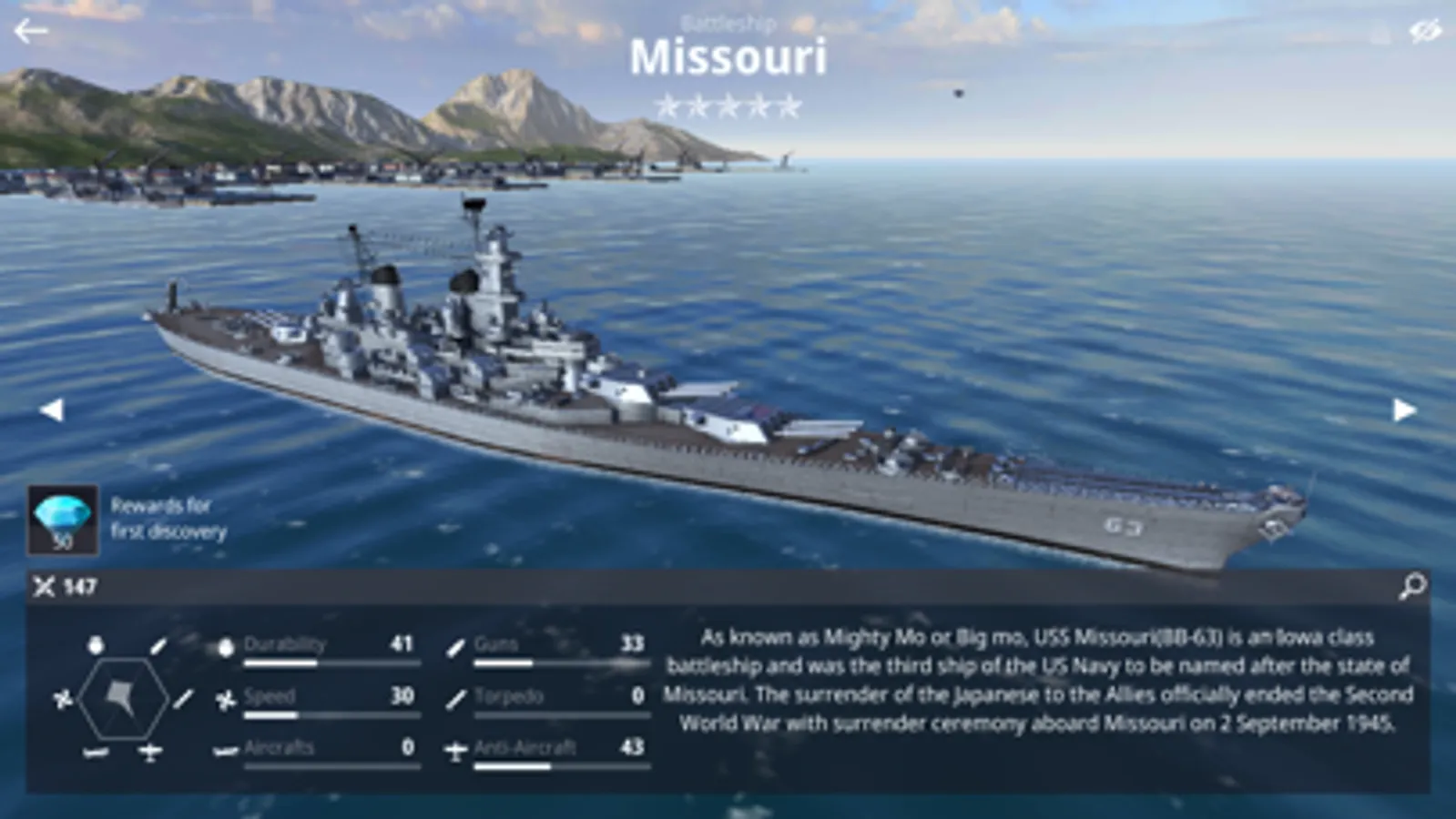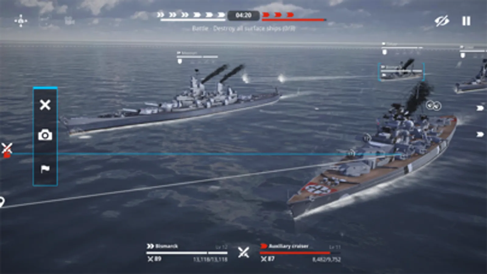 Form a fleet of up to 70 ships and conquer the sea. You can create the strongest squadron with ships of various nationalities such as german Bismarck, IJN Musashi, and USS Gearing.