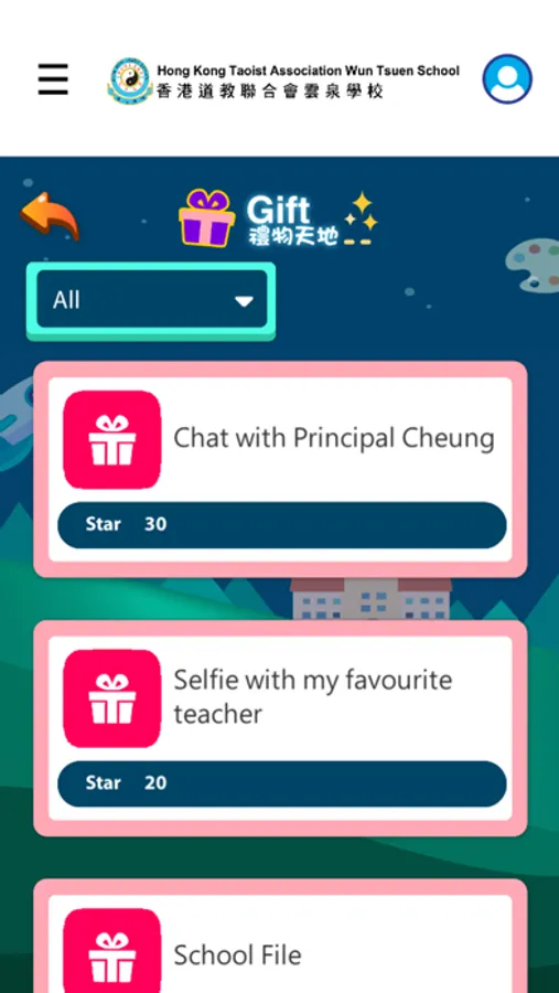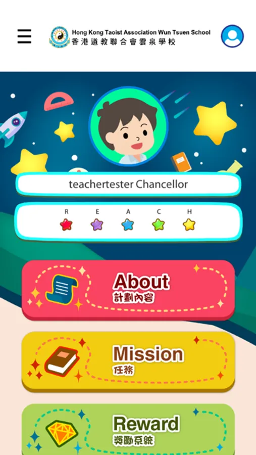 The "Reach for the Stars Reward Scheme" is a rewards programme of the Hong Kong Taoist Association Wun Tsuen School (HKTAWTS) that aims to contribute in empowering our students to be healthy, happy and good kids. The "Star" has the meaning of constantly shining upwards. "Getting a star" means to achieve an ideal while also facing challenges and difficulties in the process. This programme is a key initiative to promote the whole-person development of our students.