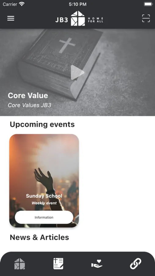 Aplikasi Gereja Jemaat Berkat Bagi Bangsa (JB3) yang memfasilitasi anda untuk membangun cara hidup berjemaat yang selaras dengan nilai-nilai inti JB3.
