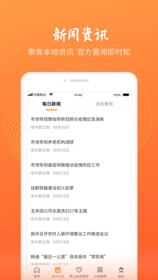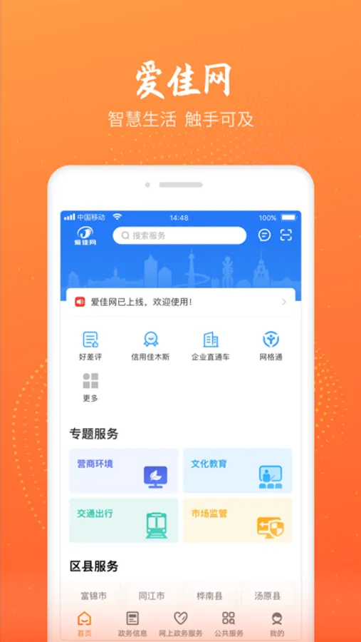 爱佳网以“让数据多跑路,让群众少跑腿”为目标,依托互联网、云计算等新一代信息技术,全面整合政府和社会相关的信息资源,为市民提供便民服务、政务服务以及本地资讯服务,打造佳木斯市城市服务的统一入口,以高效、高质的运营支撑移动便民服务在我市的普及,让企业及市民用一个移动端畅享城市综合服务,实现群众政务事项“指尖办理”,带领市民走进“数字生活”。