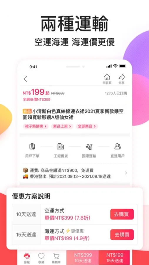10天/ 15天運輸價可選,15天運輸價格更低;