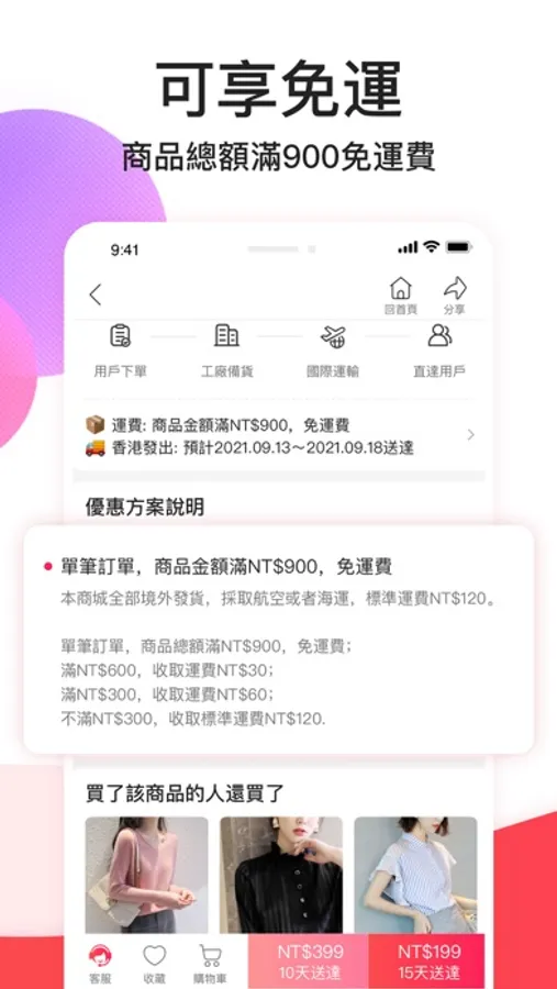 單筆訂單,商品金額滿NT$900,即可免運費;