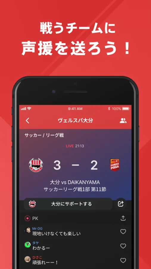アプリを通じて、チームとの距離がぐっと近くなる。仲間が増える。チームをもっと好きになる!