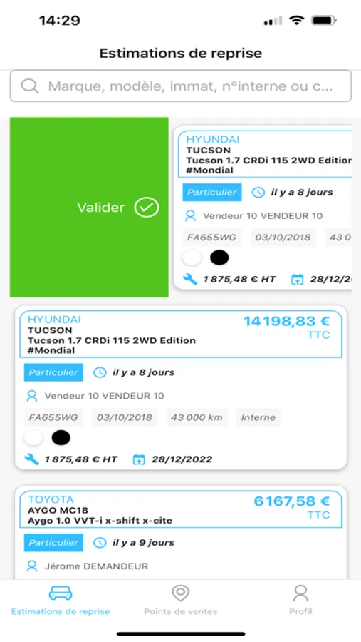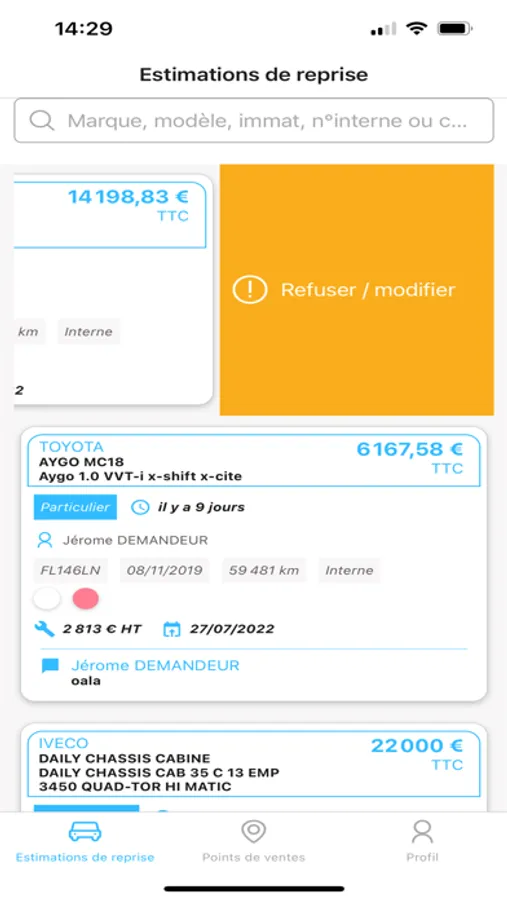 • Des actions rapides directement depuis la liste des estimations de reprise, afin de modifier, valider, ou refuser l’offre de reprise