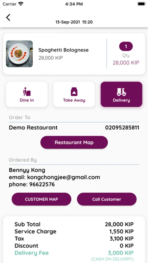 - Receive your Delivery/Takeaway/In-House/Room Services orders