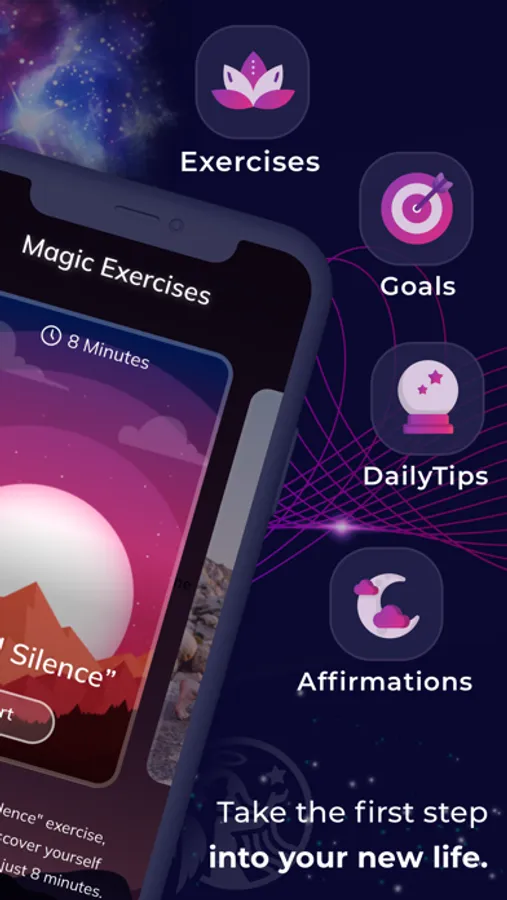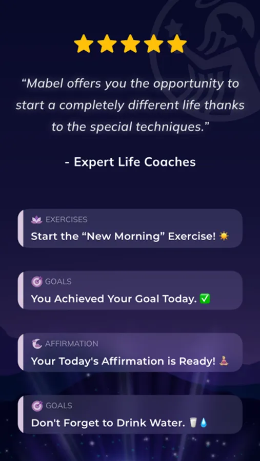 Different exercises, meditations, goal tracking system, daily tips, affirmations and much more are at MABEL.