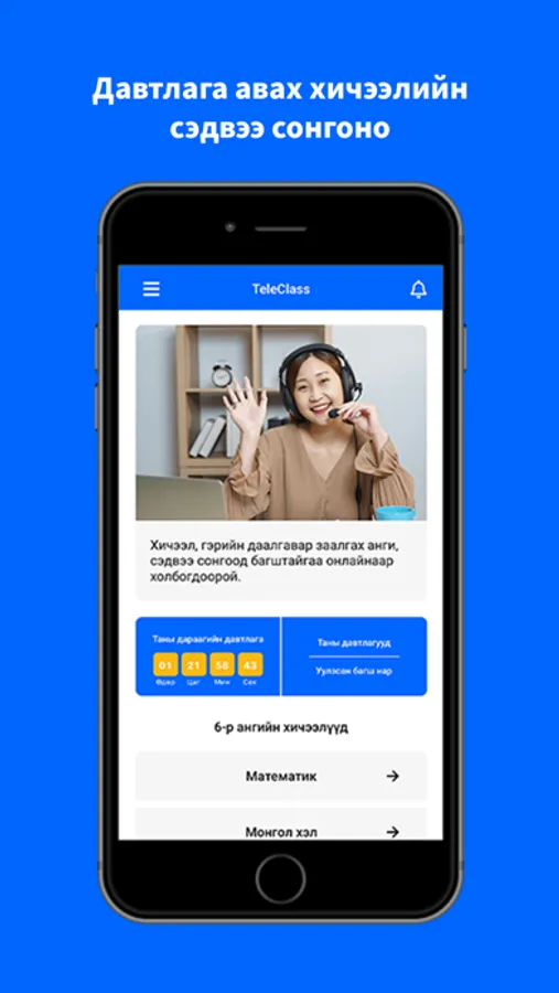 4. Таны товлосон цаг болоход TeleClass апп-аараа дамжуулан багштайгаа онлайн уулзалт хийн, давтлага авна.