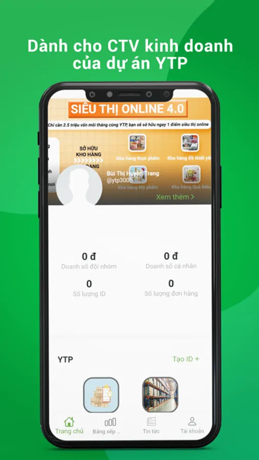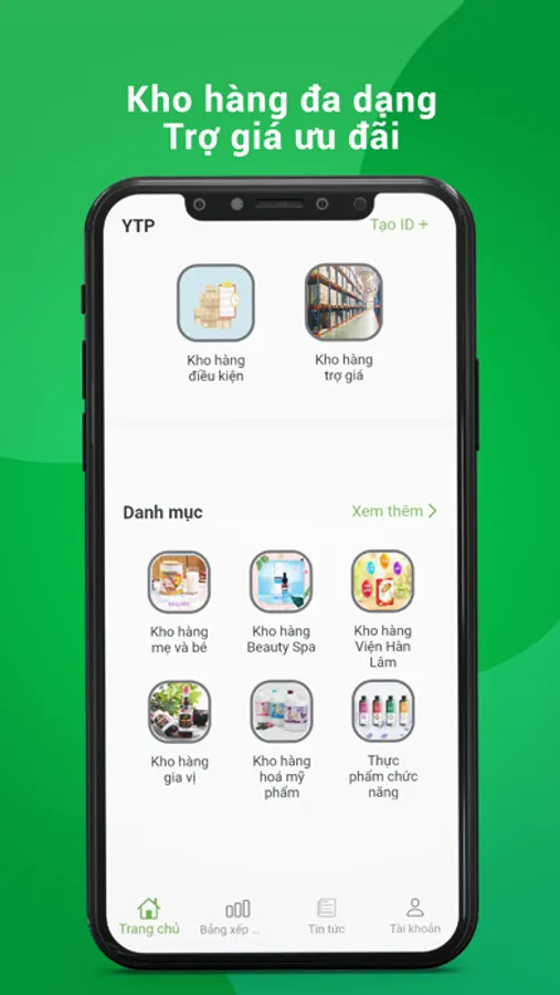 + Xem danh mục, sản phẩm , lên đơn đặt hàng trong kho hàng điều kiện và kho hàng trợ giá của dự án YTP