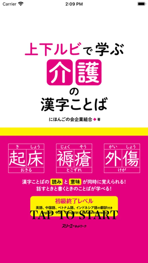 このアプリで、『上下ルビで学ぶ 介護の漢字ことば』に載っている漢字ことばの上下ルビを覚えることができます。
