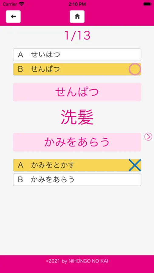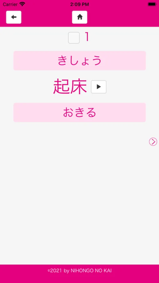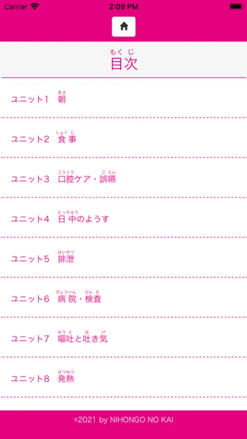 You can memorize the kana readings given above and below the kanji words of each unit. You can also confirm the pronunciation by pressing the audio button.
