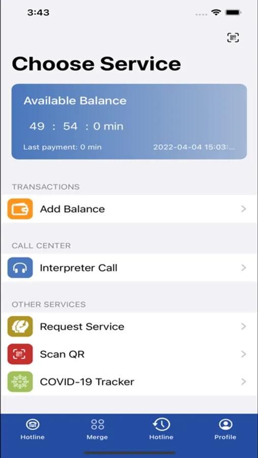 1- Scan QR code to Initiate call with another parties and Interpreter (Merge Business).