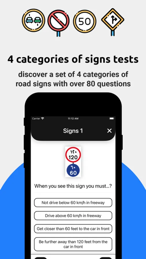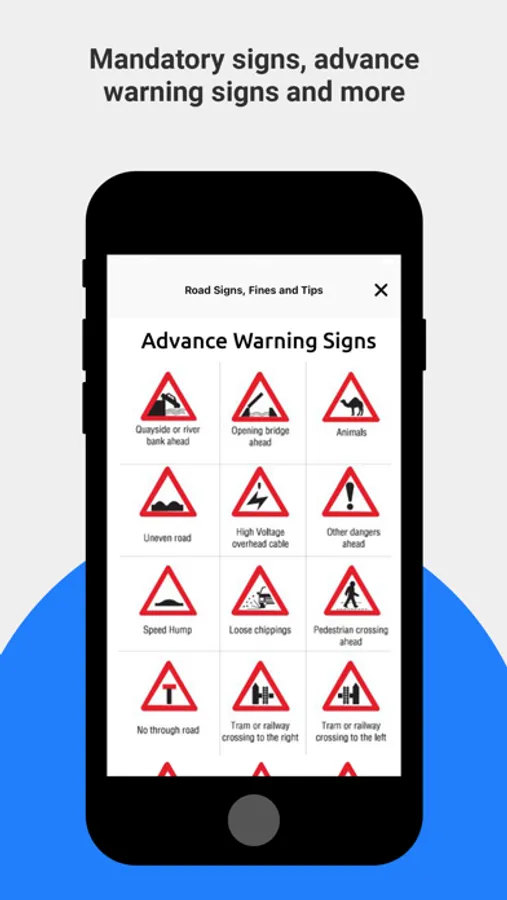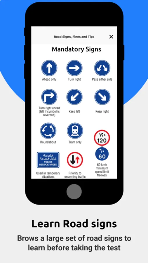 Additionally, the app calculates your passing probably score, based on your performance across all tests. To help you study further and increase your knowledge of the RTA theory test, Driving Theory Test Dubai has a dedicated learning section that let's you memorize traffic road signs including: