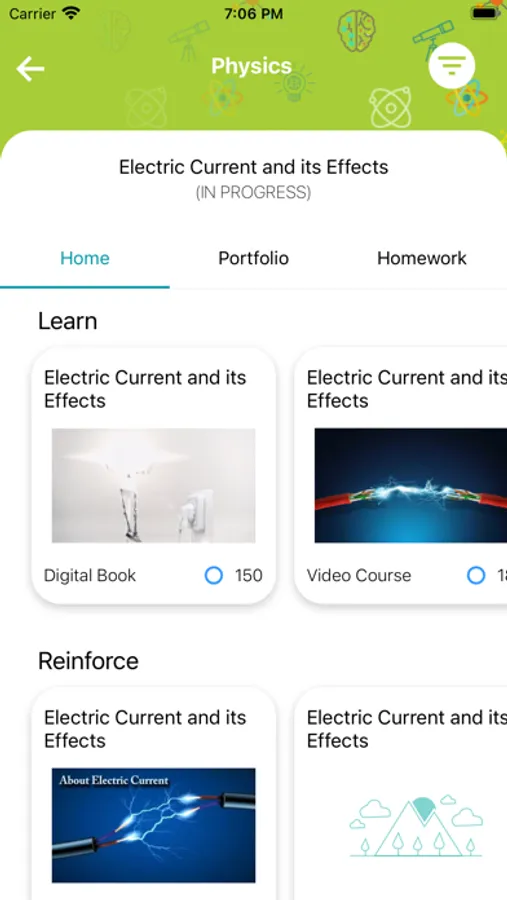 Reinforce comprises conceptual videos and daily recap cards aimed at supporting learning.
