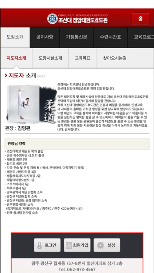 스마트시대를 맞이하여 광주 조선대 정암 태권도 효도관에서 모바일 앱을 개설했습니다!
