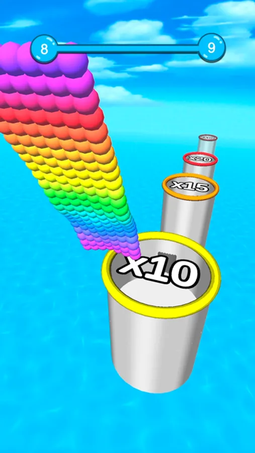 Hold down to make your snake dive on the slopes to gain speed and jump higher. Release your finger when the snake moves up to fly further. Pass through the green doors to gain new balls and avoid red doors.