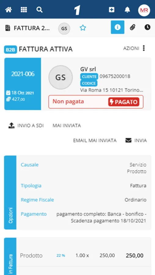 Fattura1 è una app semplice e intuitiva per emettere ed inviare le fatture ai tuoi clienti. Con la nostra app potrai creare anche fatture proforma, note di credito, ordini, ricevute e compilare i tuoi corrispettivi giornalieri. Niente più scansioni per archiviare le Tue fatture di acquisto, ti basterà una semplice foto e saranno disponibili direttamente nella sezione cloud.