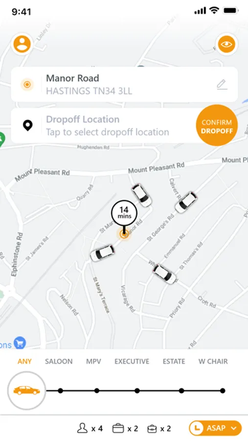You can place the booking directly on our map, and see how many available cars there are nearby.