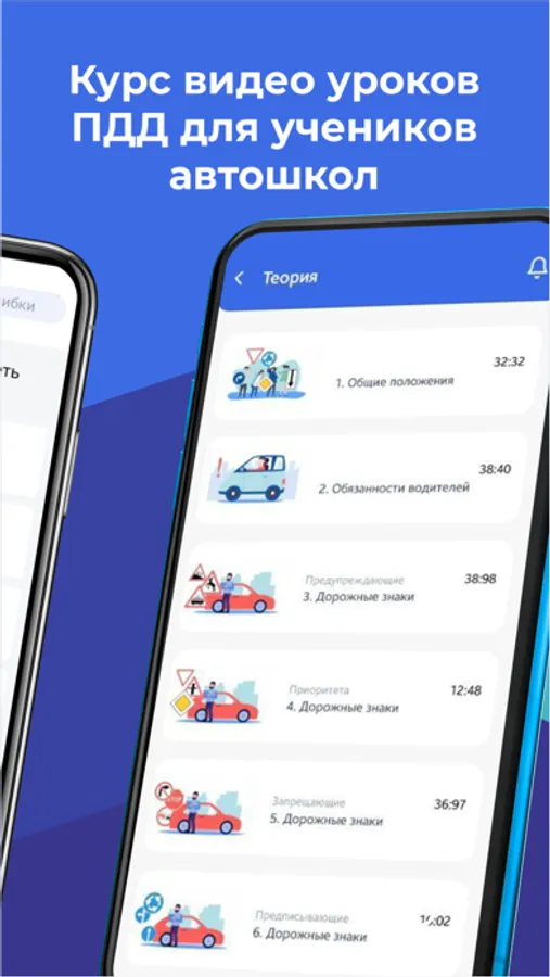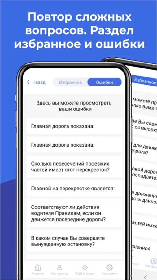 Для учеников автошкол доступен раздел «поэтапного прохождения уроков ПДД» и раздел «ошибки» для дальнейшего разбора с преподавателем.