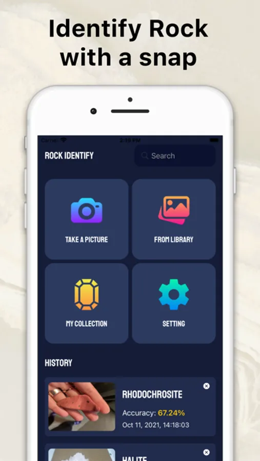 Rock Identifier has become easier with the Rock Identifier Mineral Finder app. Simply snap or upload a photo from your photo library of your rock and the Rock Identifier Mineral Finder can help you identify it in seconds. Start exploring, learning and saving your own personal stone collection with Rock Identifier Mineral Finder !