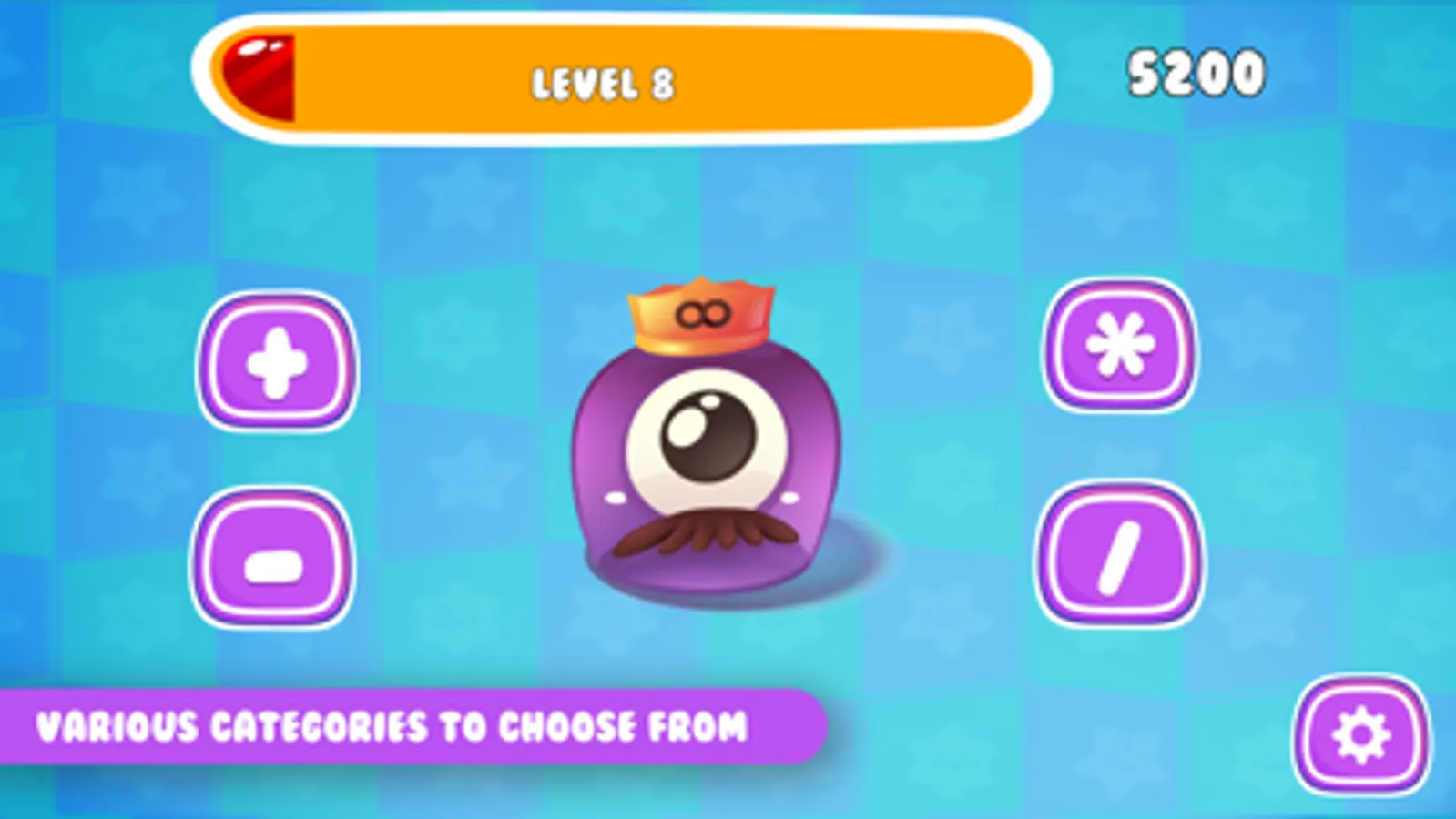 Play and reach higher levels! For example, when the character reaches level 2 the - category will be unlocked and when the character reaches level 3 the other + and / will be unlocked. Unlock new levels and collect more points! The more points you collect in this cool math game, the higher level the character gets. The math problems will become more difficult all the way up to 4 fields questions!