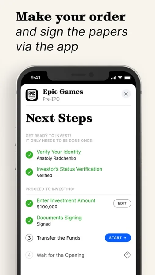 • Easy-to-use service – all the stages of the investment process are accessible via a single app.