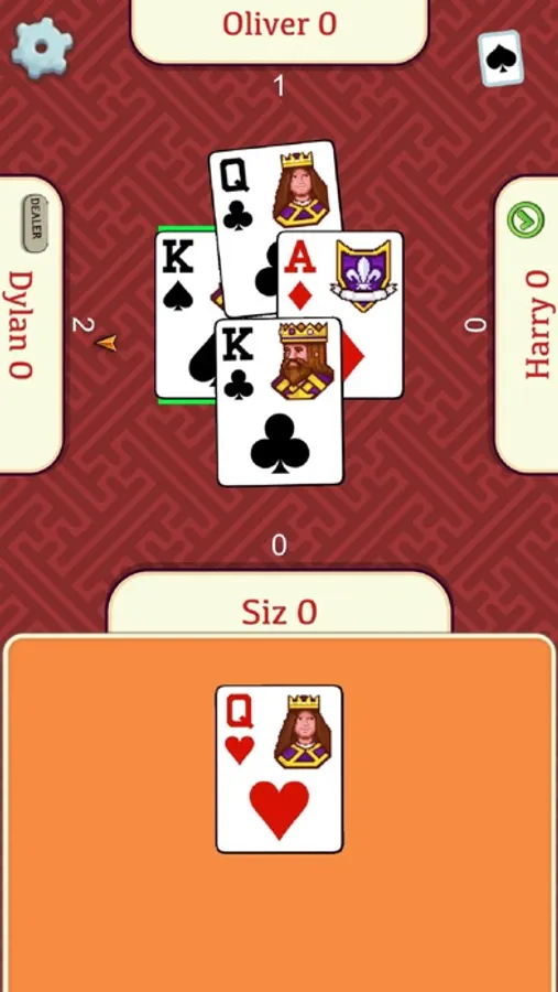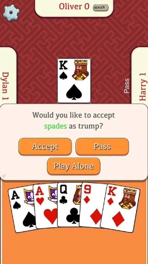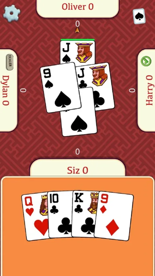 It's widely played in the United States, where it's also known as Bacon, and in other English speaking countries. In Euchre Free you play with 3 other players, forming 2 teams, and the deck in play consists of the 9, 10, J, Q, K, and A cards. There is always a trump and your objective is to score 10 or more points. You get these points in matches with 5 tricks, where the team that scores the most points and tricks wins.