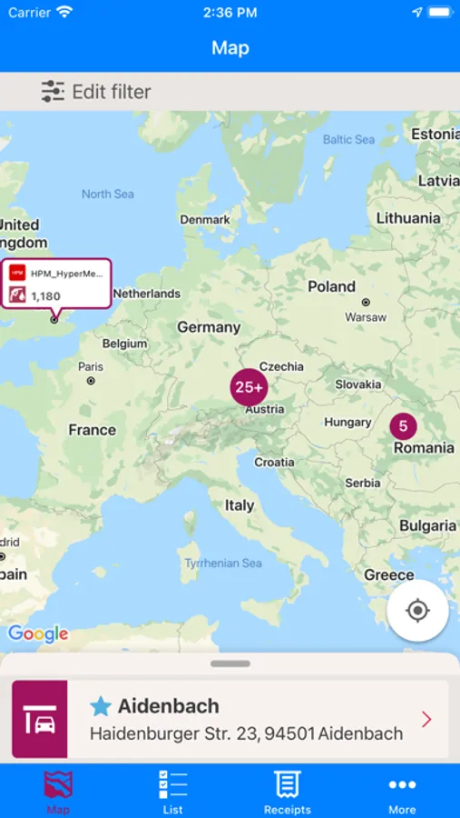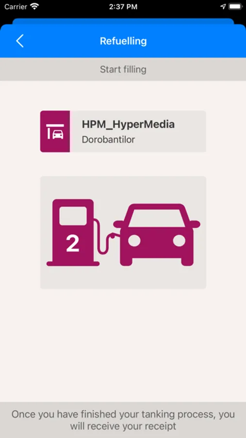 Die App bietet einen Überblick über die vorhandenen Tankstellen und identifiziert per Suchfunktion eine Tankstelle in der Nähe, um dort mit dem gewünschten Artikel zu tanken.